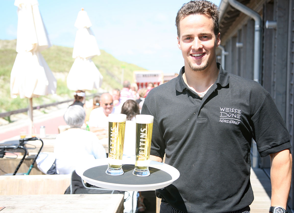 An einem der schönsten Strände der Nordseeinsel Norderney, inmitten einer atemberaubenden Dünenlandschaft, liegt das Strandrestaurant Weisse Düne. An 365 Tagen im Jahr bietet der In-Treff an der Nordsee seinen Gästen tagsüber inseltypische Speisen mit Pfiff – abends eine anspruchsvolle Genießerküche. Seit ihrer Eröffnung im Jahre 2005 hat die Weisse Düne eine fulminante Entwicklung durchlebt und überzeugt durch ihr charmant-rustikales Ambiente, die architektonische Einbindung des Gebäudes in die Natur der Insel sowie durch eine bemerkenswerte Küchenleistung. Mit 80 Plätzen im Restaurantbereich, 40 im Kaminraum und 100 Sitzgelegenheiten auf der Terrasse bietet die Weisse Düne jede Menge Platz zum Wohlfühlen.