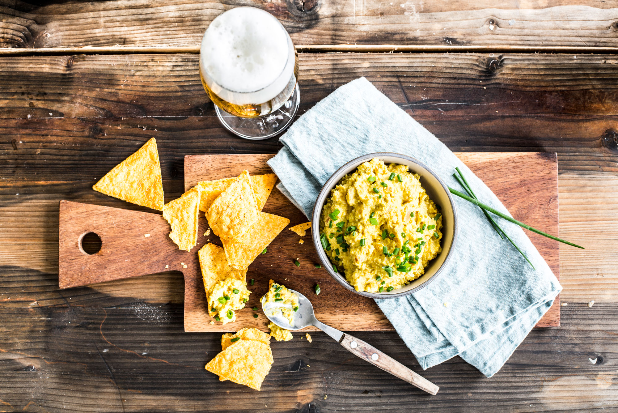 Den Knoblauch schälen, grob hacken und mit den anderen Zutaten zu den Bier-Cashews geben. Alles mit dem Pürierstab zerkleinern, bis eine homogene Masse entsteht. Vor dem Servieren sollte die Bieronaise für etwa 1 Stunde kühl gestellt werden.